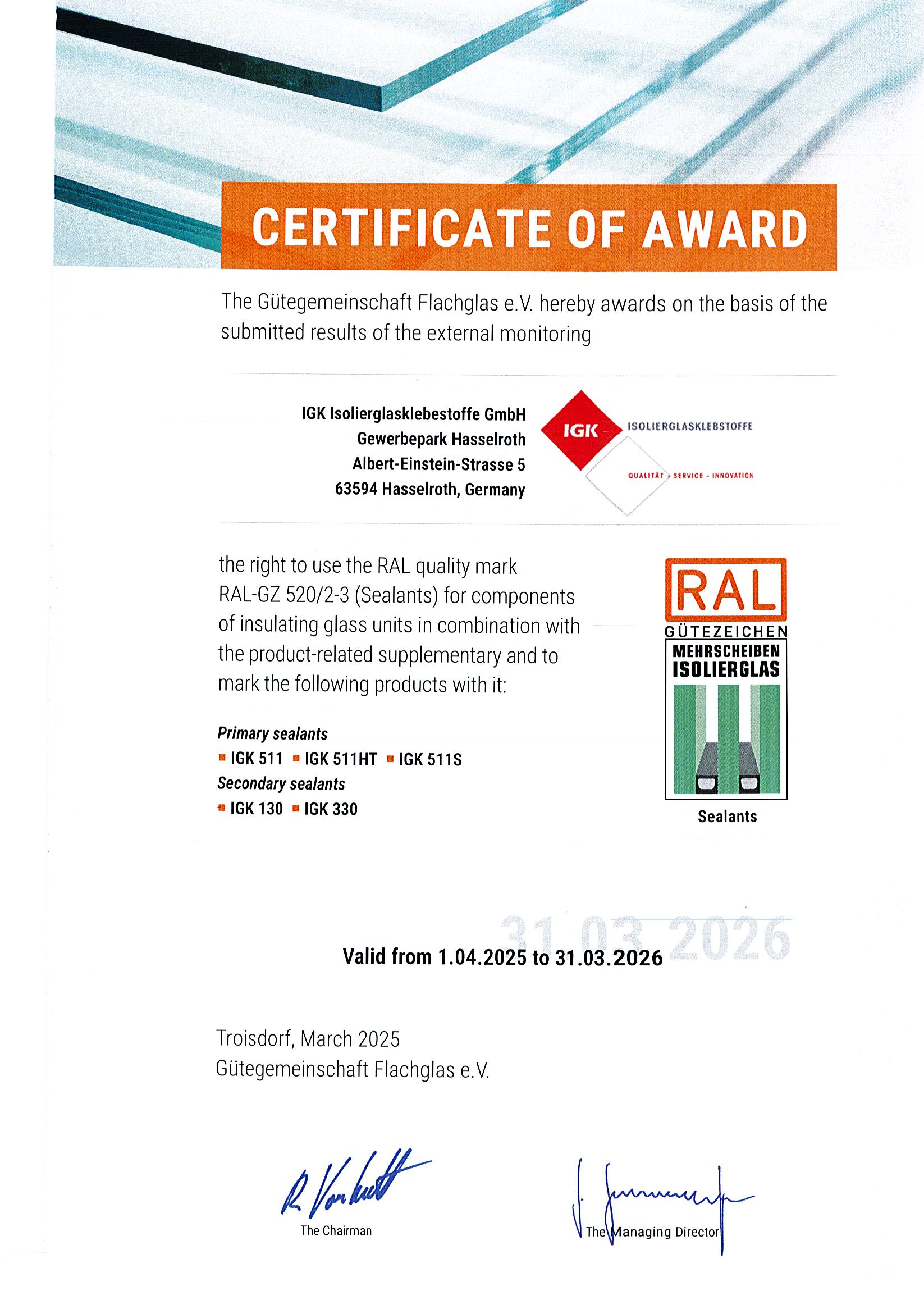 IGK manufactures exclusively and entirely in Germany and is certified in accordance with the quality management standard DIN EN ISO 9001 and the environmental management standard EN ISO 14001. Continuous in-house quality controls and regular monitoring by external testing institutes also guarantee that you can rely on our products at every stage of the manufacturing process.
