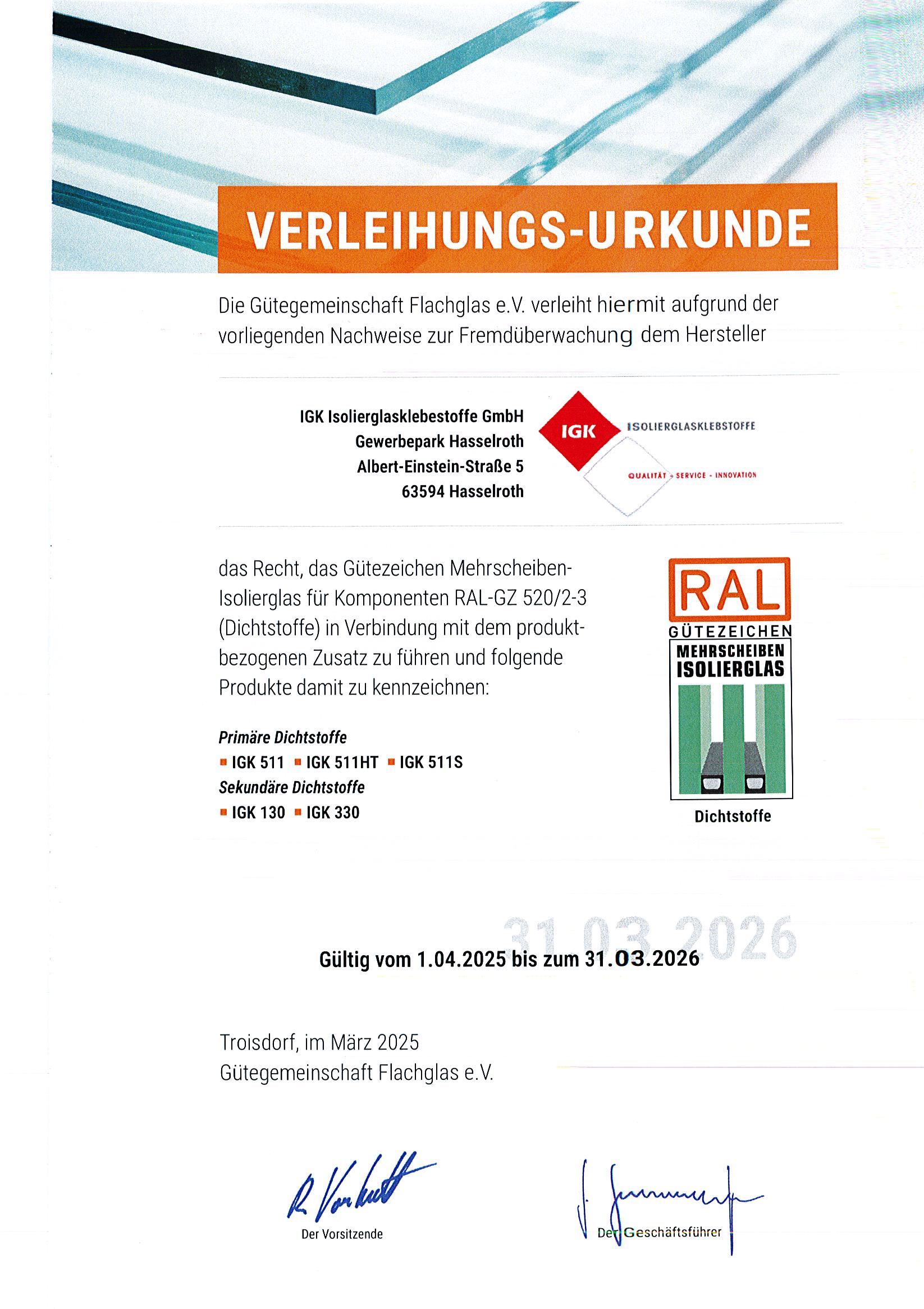 IGK produziert ausnahmslos und vollständig in Deutschland und ist nach der Qualitätsmanagementnorm DIN EN ISO 9001 sowie der Umweltmanagementnorm EN ISO 14001 zertifiziert.